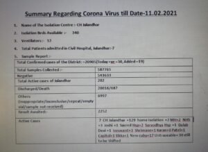 ब्यूरो:- करोना लगातार अपने पैर पसारता नजर आ रहा है। आज शाम आई रिपोर्ट में जिला जालंधर में 30 मामले आए। जो कि चिंता का विषय है। समाजिक दुरी तथा मास्क का प्रयोग करोना के ख़िलाफ़ जंग में हमारे सबसे बड़े हथियार है।