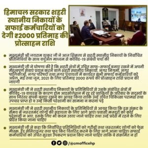 मुख्यमंत्री जय राम ठाकुर की अध्यक्षता में आज यहां आयोजित राज्य मंत्रिमण्डल की बैठक में राज्य में कोविड-19 की स्थिति की समीक्षा की गई और कोविड-19 के मामलों में हो रही वृद्धि पर चिंता व्यक्त की। इस वायरस के संक्रमण की कड़ी को तोड़ने के लिए मंत्रिमण्डल ने पूरे प्रदेश में कोरोना कफ्र्यू को 26 मई, 2021 को प्रातः 6 बजे तक बढ़ाने का निर्णय लिया।