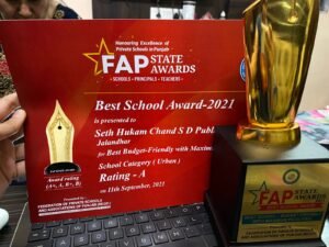 स्कूलस एंड एसोशीएशन्स ऑफ पंजाब (FAP) द्वारा एक राज्य स्तरीय पुरस्कार वितरण समारोह का आयोजन चंडीगढ़ यूनिवर्सिटी में करवाया गया।इसमें पंजाब भर के प्राइवेट स्कूलों ने हिस्सा लिया।अपनी प्रतिभा का लोहा मनवाते हुए सेठ हुक्म चन्द एस डी पब्लिक स्कूल न्यू प्रेम नगर ने A रेटिंग के साथ बेस्ट बजट फ्रेंडली विद मैक्सिमम फैसिलिटी स्कूल ऑफ पंजाब का खिताब अपने नाम किया।