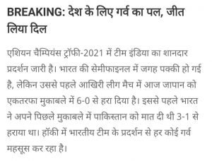 Breaking Newsदेश के लिए गर्व का पल,जीत लिया दिलBy Admin - December 19, 20210229 Share on Facebook Tweet on Twitter tweet Google+ Google+ Post Views: 131