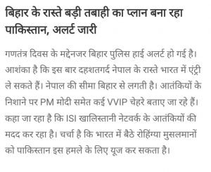 Breaking Newsबिहार के रास्ते पाकिस्तान बना रहा बड़ी तबाही का प्लान । अलर्ट जारीBy Admin - January 23, 20220202 Share on Facebook Tweet on Twitter tweet Google+ Google+ Post Views: 108