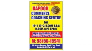 जालंधर (रामपाल): जालंधर शहर के पक्का बाग में स्थित कपूर कॉमर्स कोचिंग सैंटर जो कि कोचिंग फैडरेशन ऑफ इंडिया (न्यू दिल्ली) से रजिस्टर्ड है, यहां 12वीं कक्षा का नया सत्र (2022–23) 11 अप्रैल से शुरु होने जा रहा है। सैंटर के संचालक ने बताया कि हर साल हमारे कोचिंग सैंटर के सभी छात्र अच्छे नंबर लेकर पास होते हैं। यहां पर विद्यार्थियों को कॉन्सेप्ट बड़ी अच्छी तरह से समझाया जाता हैं। विद्यार्थियों के लगातार लिए जानें वाले टैस्ट उन्हे परीक्षायों के लिए तैयार करते हैं। उन्होंने हमारे संवादाता को बताया कि हमारे सैंटर में कॉमर्स से संबंधित सभी विषय पढ़ाए जाते हैं तथा ये भी कहा हमारी एक और ब्रांच ग्रीन एवेन्यू ,बस्ती पीर दाद, कपूरथला रोड़ पर भी हैं । अधिक जानकारी के लिए विधार्थी इस मोबाईल न: 9815015941, पर संपर्क कर सकते हैं।