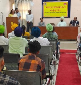 कपूरथला : रिफलेक्शन ब्यूरो: (अंकित भास्कर )विश्व जूनोसिस दिवस हर साल 6 जुलाई को मनाया जाता है. इस दिन को मनाने का मुख्य उद्देश्य आम जनता को उन बीमारियों के बारे में जागरूक करना है जो जानवरों से इंसानों में फैल सकती हैं। रोग नियंत्रण और रोकथाम केंद्र (सीडीसी) के एक अध्ययन में पाया गया कि सभी मौजूदा बीमारियों में से 60 प्रतिशत जूनोटिक हैं,इन शब्दो का प्रगतावा सिविल सर्जन डॉ. गुरिंदरबीर कौर ने जिला प्रशिक्षण केंद्र में आयोजित जागरूकता संगोष्ठी के दौरान किया । उन्होंने कहा कि इस वर्ष विश्व जूनोसिस दिवस से संबंधित जागरूकता संगोष्ठी “लेट्स ब्रेक द चेन ऑफ ज़ोनोटिक ट्रांसमिशन” विषय के तहत आयोजित की जा रही हैं।