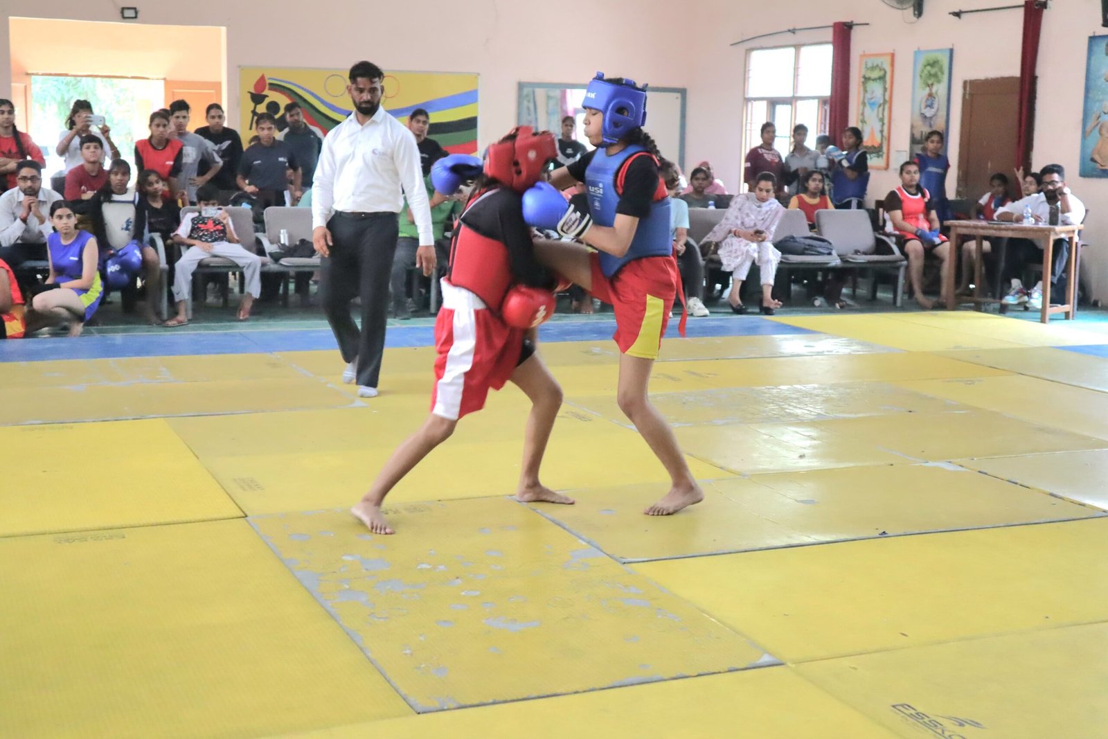 ਡੀ.ਐਮ ਸਪੋਰਟਸ ਅਮਨਦੀਪ ਕੌਂਡਲ ਵੱਲੋਂ ਅੱਜ ਦੇ ਮੈਚਾਂ ਦੇ ਨਤੀਜਿਆਂ ਦੀ ਜਾਣਕਾਰੀ ਸਾਂਝੀ ਕੀਤੀ ਗਈ। ਪੰਜਾਬ ਸਕੂਲ ਖੇਡਾਂ ਵੁਸ਼ੂ ਦੇ ਅੰਡਰ-17 ਦੇ 70 ਕਿਲੋ ਭਾਰ ਵਰਗ ਵਿੱਚ ਜਲੰਧਰ ਦੀ ਅਵਨੀ ਨੇ ਪਹਿਲਾ, ਪਟਿਆਲਾ ਦੀ ਮਹਿਕ ਆਹਲੂਵਾਲੀਆ ਨੇ ਦੂਜਾ ਅਤੇ ਬਠਿੰਡਾ ਦੀ ਹਰਸਿਮਰਨ ਕੌਰ ਨੇ ਤੀਜਾ ਸਥਾਨ ਪ੍ਰਾਪਤ ਤੇ ਕੀਤਾ। 65 ਕਿਲੋਗ੍ਰਾਮ ਭਾਰ ਵਰਗ ਵਿੱਚ ਜਲੰਧਰ ਦੀ ਪ੍ਰਕ੍ਰਿਤੀ ਲਾਲ ਨੇ ਪਹਿਲਾ, ਹੁਸ਼ਿਆਰਪੁਰ ਦੀ ਸਾਨੀਆ ਸਹੋਤਾ ਨੇ ਦੂਸਰਾ ਅਤੇ ਫਾਜ਼ਿਲਕਾ ਦੀ ਯੂਵਿਕਾ ਨੇ ਤੀਸਰਾ ਸਥਾਨ ਹਾਸਲ ਕੀਤਾ। 60 ਕਿਲੋ ਗ੍ਰਾਮ ਭਾਰ ਵਰਗ ਵਿੱਚ ਜਲੰਧਰ ਦੀ ਕ੍ਰਿਸਟੀਨਾ ਸ਼ਰਮਾ ਨੇ ਪਹਿਲਾ, ਫਤਿਹਗੜ੍ਹ ਸਾਹਿਬ ਦੀ ਸੰਦੀਪ ਕੌਰ ਨੇ ਦੂਸਰਾ ਅਤੇ ਸ਼ਹੀਦ ਭਗਤ ਸਿੰਘ ਨਗਰ ਦੀ ਏਕਤਾ ਬਾਲੀ ਨੇ ਤੀਜਾ ਸਥਾਨ ਹਾਸਲਕੀਤਾ।