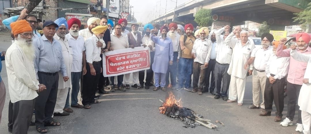 ਫ਼ਗਵਾੜਾ:30ਅਕਤੂਬਰ (ਐਸ . ਕੇ. ਕਪੂਰ) ਸ.ਭਗਵੰਤ ਸਿੰਘ ਮਾਨ ਦੀ ਪੰਜਾਬ ਸਰਕਾਰ ਦੇ ਮੁਲਾਜ਼ਮ ਅਤੇ ਪੈਨਸ਼ਨਰ ਵਿਰੋਧੀ ਵਤੀਰੇ ਦੇ ਖਿਲਾਫ਼ ਪੰਜਾਬ ਮੁਲਾਜ਼ਮ ਅਤੇ ਪੈਨਸ਼ਨਰ ਸਾਂਝਾ ਫਰੰਟ ਦੇ ਵੱਲੋਂ ਦਿੱਤੇ ਗਏ ਸੱਦੇ ਅਨੁਸਾਰ ਅੱਜ ਨਗਰ ਨਿਗਮ ਫ਼ਗਵਾੜਾ ਦੇ ਦਫ਼ਤਰ ਦੇ ਸਾਹਮਣੇ ਪਾਰਕ ਵਿੱਚ ਇਕੱਠੇ ਹੋ ਕੇ ਮੁਲਾਜ਼ਮਾਂ ਅਤੇ ਪੈਨਸ਼ਨਰਾਂ ਨੇ ਜ਼ੋਰਦਾਰ ਨਾਅਰੇਬਾਜ਼ੀ ਕਰਦੇ ਹੋਏ ਹੰਸ ਰਾਜ ਬੰਗੜ,ਮੋਹਣ ਸਿੰਘ ਭੱਟੀ, ਪਰਮਿੰਦਰ ਪਾਲ ਸਿੰਘ, ਹਰਸਿਮਰਨ ਸਿੰਘ, ਗੁਰਮੁਖ ਲੋਕ ਪ੍ਰੇਮੀ ਦੀ ਅਗਵਾਈ ਹੇਠ ਝੂਠਾਂ ਦੀ ਪੰਡ ਮੁੱਖ ਮੰਤਰੀ ਪੰਜਾਬ ਭਗਵੰਤ ਸਿੰਘ ਮਾਨ ਦਾ ਪੁਤਲਾ ਗੋਲ ਚੌਕ ਵਿੱਚ ਜਾ ਕੇ ਫੂਕਿਆ ਗਿਆ।