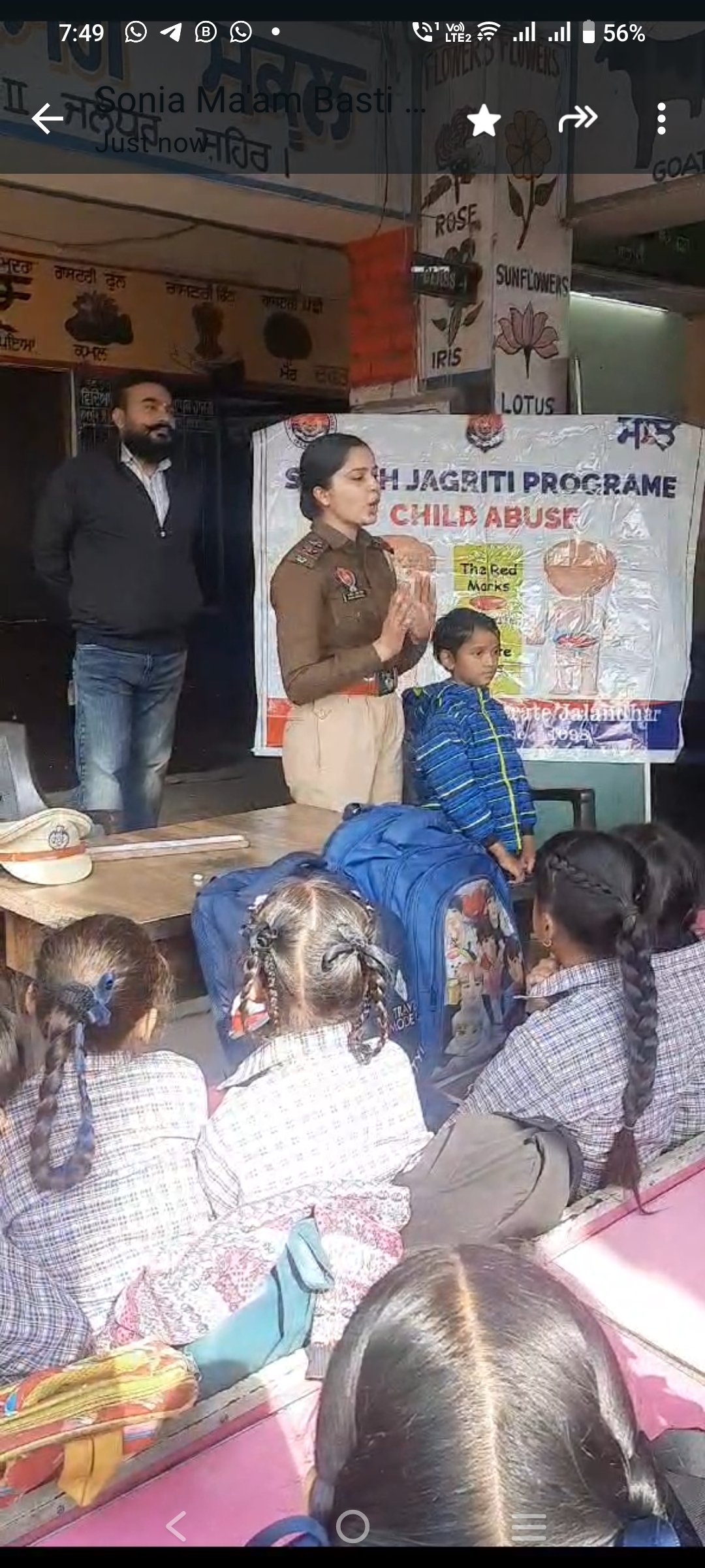 ਇਸ ਲਈ ਵੱਖ ਵੱਖ ਸਕੂਲਾਂ ਵਿੱਚ ਸਾਂਝ ਜਾਗ੍ਰਤੀ ਪ੍ਰੋਗਰਾਮ ਤਹਿਤ ਸੈਮਨੀਆਰ ਲਗਾ ਕੇ ਬੱਚਿਆ ਨੂੰ ਲਗਾਤਾਰ ਜਾਗਰੂਕ ਕਰ ਰਹੀਂ ਹੈ ,ਤਾਂ ਜੋ ਬੱਚਿਆਂ ਨਾਲ ਹੋ ਰਹੀਆਂ ਬਦਸਲੂਕੀਆਂ ਨੂੰ ਰੋਕਿਆ ਜਾ ਸਕੇ । ਇਸੇ ਪ੍ਰੋਗਰਾਮ ਤਹਿਤ ਅੱਜ ਸਬ ਇੰਸਪੈਕਟਰ ਰਾਬੀਆ ਪ੍ਰੀਤ ਗਿੱਲ ਅਤੇ ਕਾਂਸਟੇਬਲ ਪ੍ਰੀਆ ਵੱਲੋ ਸਰਕਾਰੀ ਪ੍ਰਾਇਮਰੀ ਸਕੂਲ ਬਸਤੀ ਪੀਰ ਦਾਦ ਵਿਖੇ ਚਾਇਲਡ ਅਬਿਊਸ ਨਾਲ ਸੰਬੰਧਿਤ ਸੈਮੀਨਾਰ ਕਰਵਾਇਆ ਗਿਆ ਜਿਸ ਵਿੱਚ ਬੱਚਿਆਂ ਨੂੰ ਚੰਗੇ ਅਤੇ ਮੰਦੇ ਛੂਹਣ ਦੇ ਪ੍ਰਤੀ ਬੱਚਿਆਂ ਨੂੰ ਸਮਜਾਇਆ ਗਿਆ।