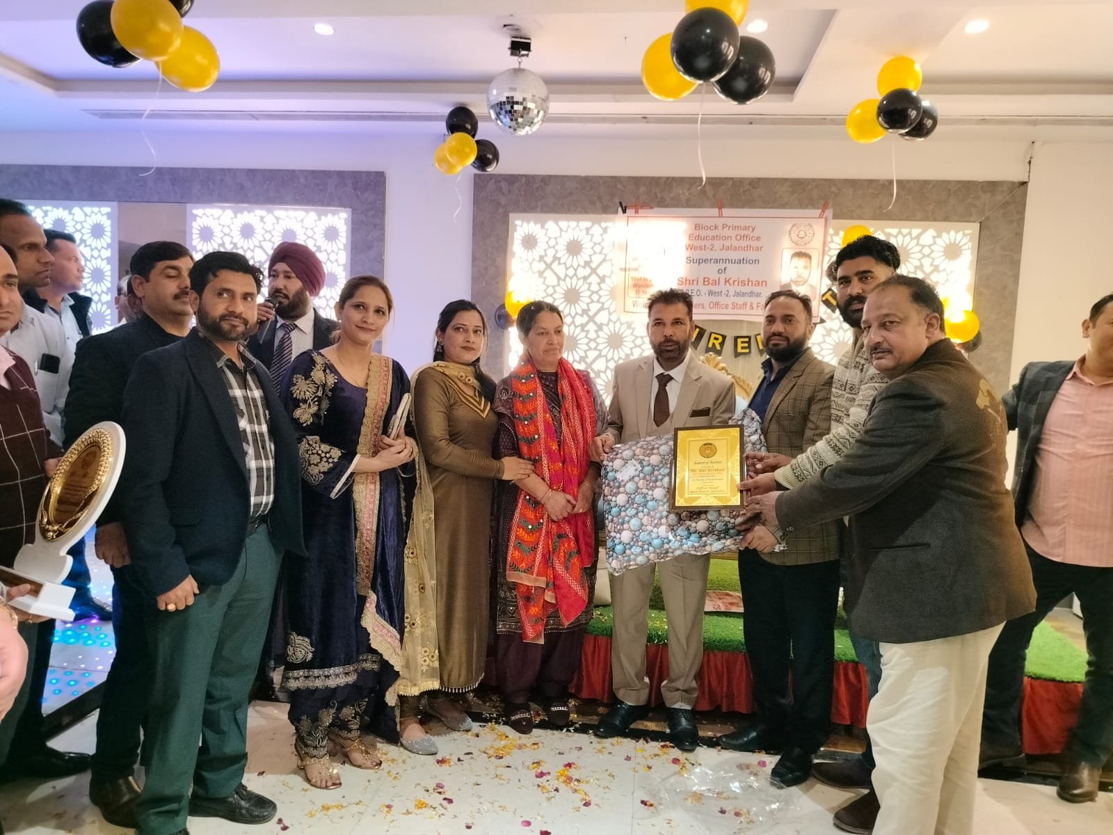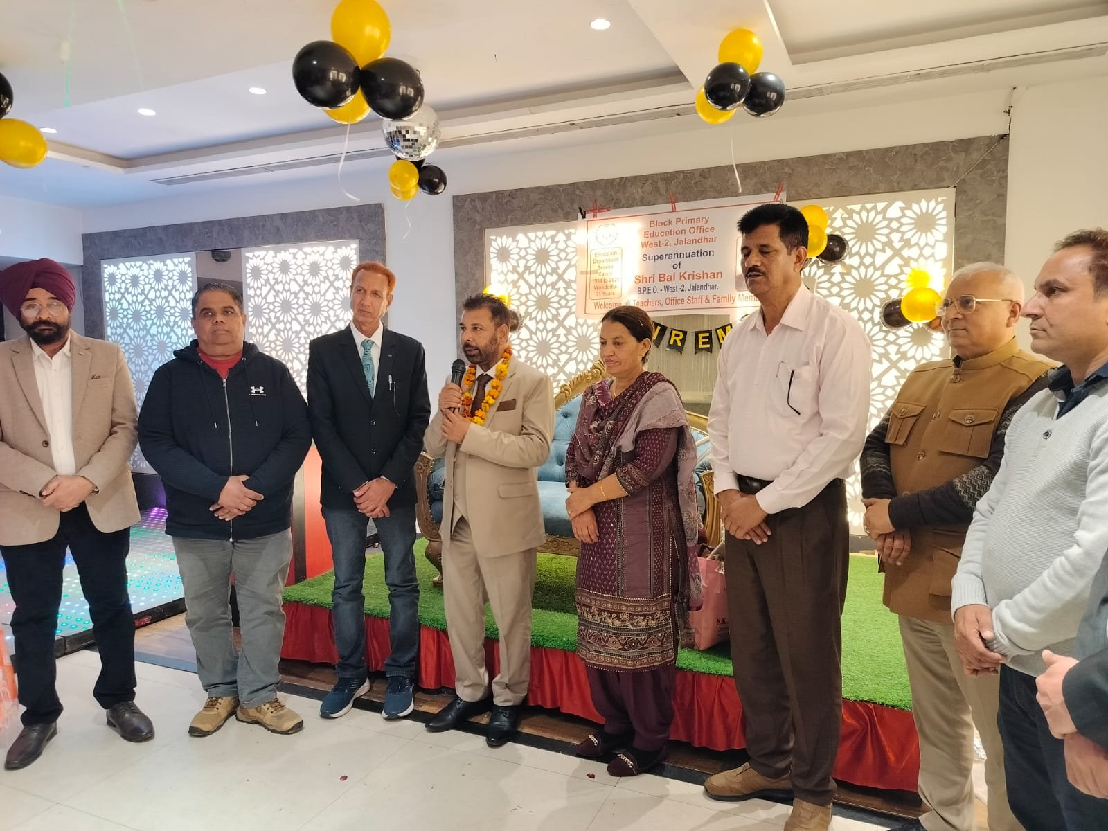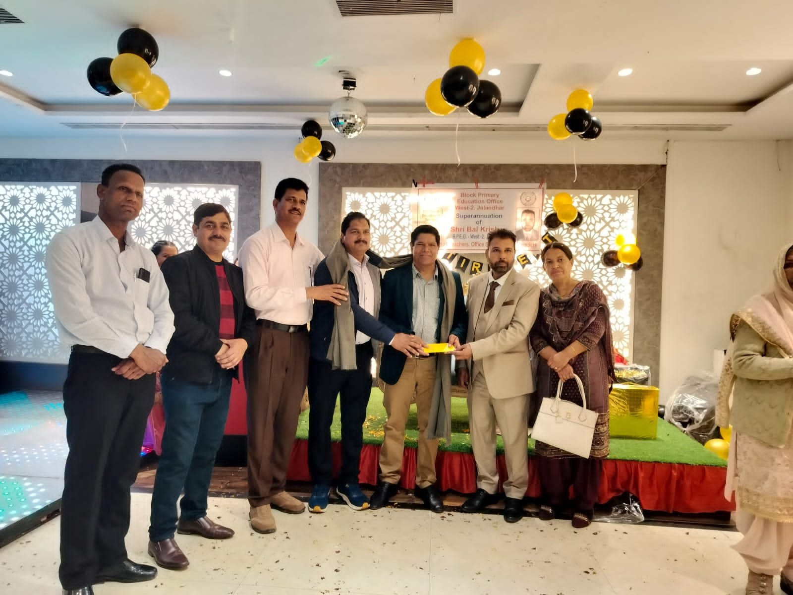 ਜਲੰਧਰ (ਕਪੂਰ):- ਸਿੱਖਿਆ ਦੇ ਖੇਤਰ ਵਿੱਚ ਕਾਫੀ ਮੱਲਾਂ ਮਾਰਨ ਵਾਲੇ ਅਤੇ ਇਸ ਨੂੰ ਉੱਚਾ ਚੁੱਕਣ ਵਾਲੇ ਬਲਾਕ ਸਿੱਖਿਆ ਅਧਿਕਾਰੀ ਸ੍ਰੀ ਬਾਲ ਕ੍ਰਿਸ਼ਨ ਅੱਜ 31 ਸਾਲ ਦੀ ਬੇਦਾਗ ਸਰਵਿਸ ਉਪਰਾਂਤ ਰਿਟਾਇਰ ਹੋ ਗਏ ਹਨ। ਉਹਨਾਂ ਦੀ ਰਿਟਾਇਰਮੇਂਟ ਪਾਰਟੀ ਦਾ ਆਯੋਜਨ ਜਲੰਧਰ ਦੇ ਇਕ ਹੋਟਲ ਵਿੱਚ ਕੀਤਾ ਗਿਆ।