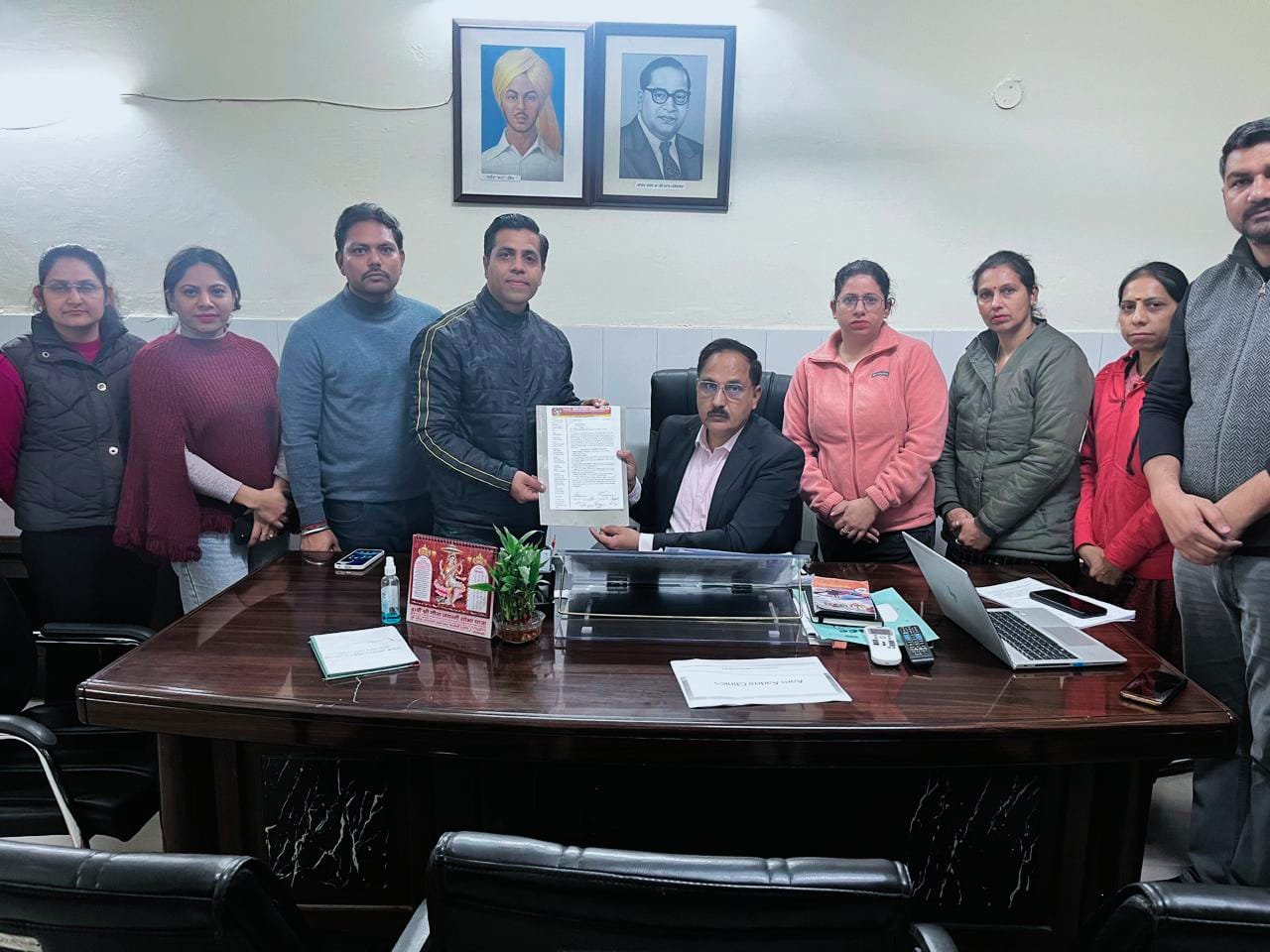 ਪਿਛਲੇ ਲੰਮੇ ਸਮੇਂ ਤੋਂ ਸਿਹਤ ਵਿਭਾਗ ਜਲੰਧਰ ‘ਚ ਕੰਮ ਕਰਦੇ ਨੈਸ਼ਨਲ ਹੈਲਥ ਮਿਸ਼ਨ ਦੇ ਕਰਮਚਾਰੀਆਂ ਨੇ ਐਨ ਐਚ ਐਮ ਇੰਪਲਾਈਜ਼ ਯੂਨੀਅਨ ਪੰਜਾਬ ਵੱਲੋਂ ਉਲੀਕੇ ਰੋਸ ਪ੍ਰੋਗਰਾਮ ਤਹਿਤ ਆਪਣੀ ਹੱਕੀ ਮੰਗਾਂ ਨੂੰ ਸਰਕਾਰ ਤੱਕ ਪਹੁੰਚਦਾ ਕਰਨ ਲਈ ਸਿਵਲ ਸਰਜਨ ਜਲੰਧਰ ਡਾ. ਗੁਰਮੀਤ ਲਾਲ ਨੂੰ ਨੂੰ ਆਪਣਾ ਮੰਗ ਦਿੱਤਾ। ਸਿਵਲ ਸਰਜਨ ਜਲੰਧਰ ਡਾ. ਗੁਰਮੀਤ ਲਾਲ ਨੂੰ ਮੰਗ ਪੱਤਰ ਦੇਣ ਸਮੇਂ ਜਿਲ੍ਹਾ ਪ੍ਰੋਗਰਾਮ ਮੈਨੇਜਰ (ਡੀਪੀਐਮ) ਡਾ. ਸੁਖਵਿੰਦਰ ਕੌਰ, ਡਾ. ਦੇਵ, ਪਰਮਵੀਰ ਝਮਟ ਆਰਬੀਐਸਕੇ ਕੋਆਰਡੀਨੇਟਰ, ਡਾ. ਸ਼ੋਭਨਾ ਬਾਂਸਲ ਜਿਲ੍ਹਾ ਐਪੀਡਮੋਲੋਜਿਸਟ, ਜਿਲ੍ਹਾ ਬੀਸੀਸੀ ਕੋਆਰਡੀਨੇਟਰ ਨੀਰਜ ਸ਼ਰਮਾ ਮੋਨਿਕਾ, ਵਿਜੈ ਅਤੇ ਹੋਰ ਕਰਮਚਾਰੀ ਮੌਜੂਦ ਸਨ।
