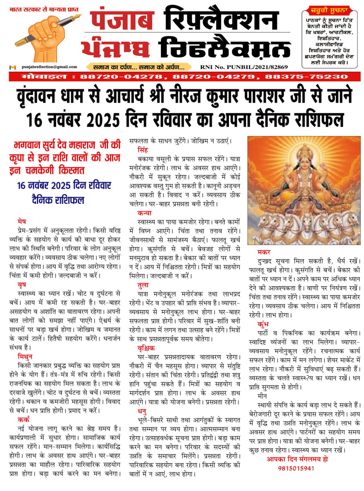 वृंदावन धाम से आचार्य श्री नीरज कुमार पाराशर जी से जाने 16 नवंबर 2025 दिन रविवार का अपना दैनिक राशिफल