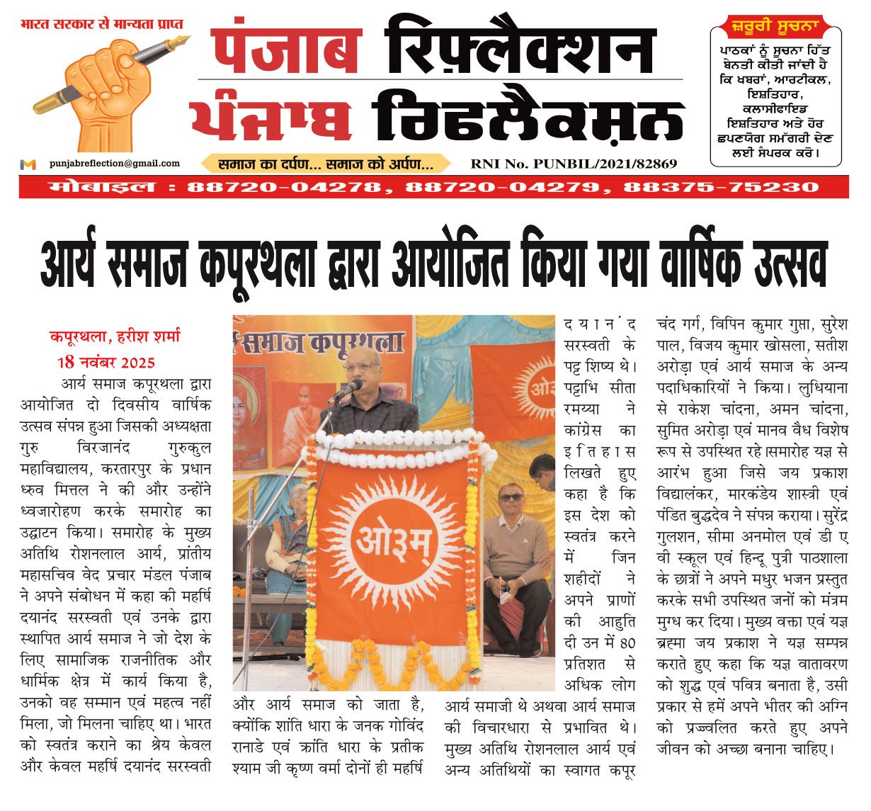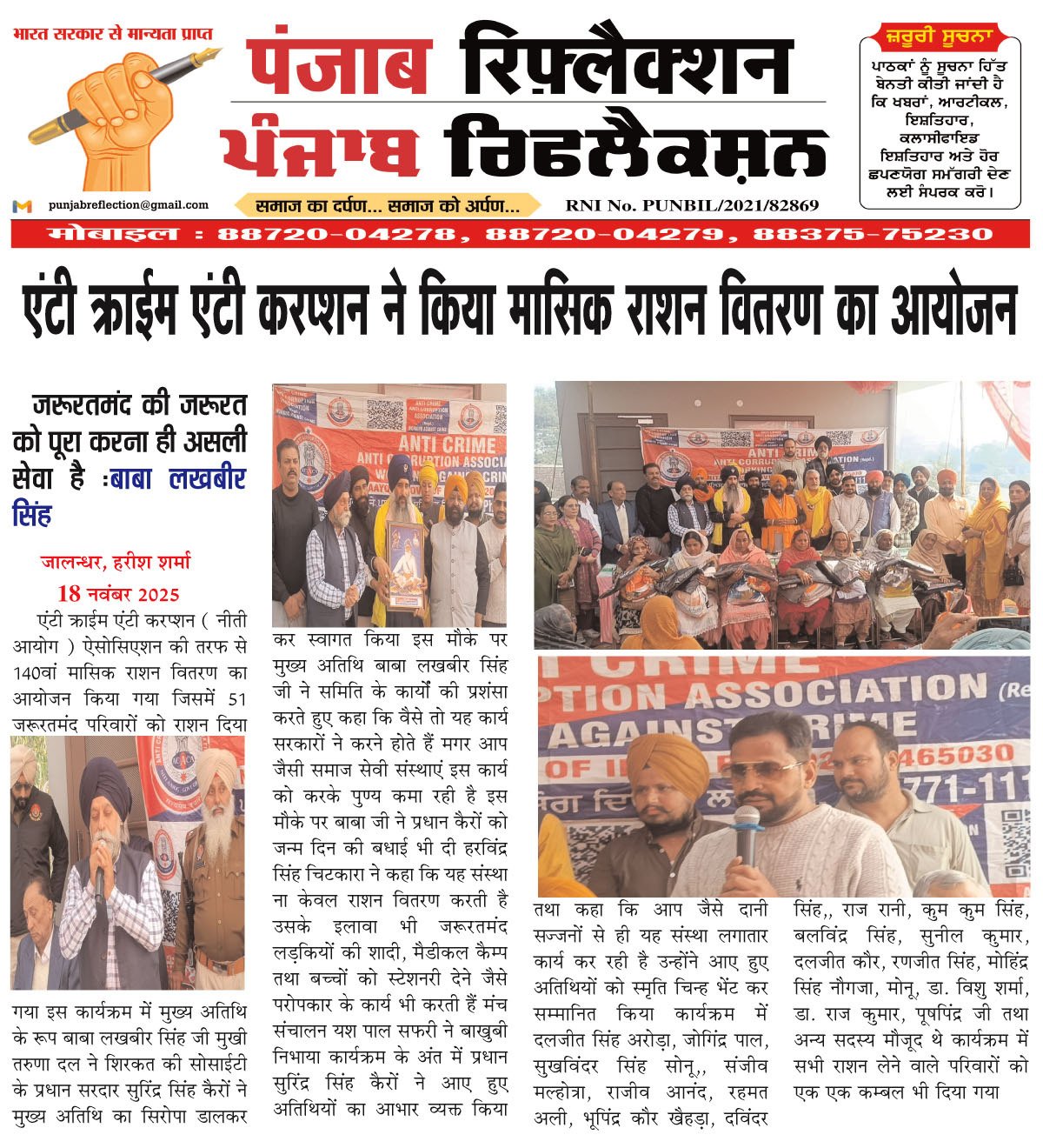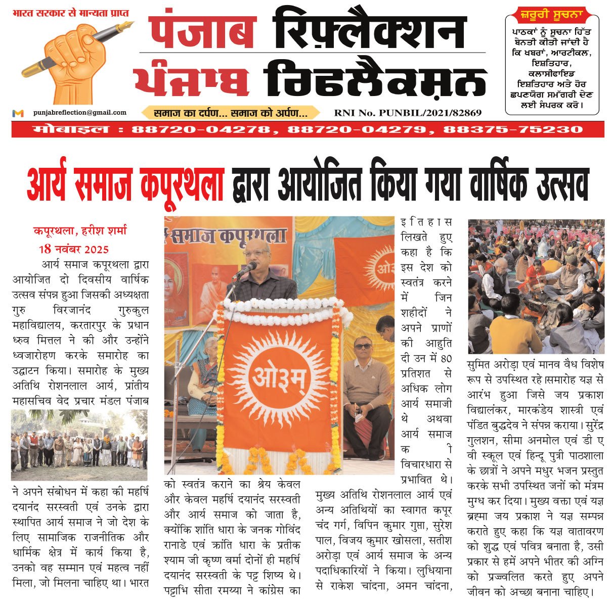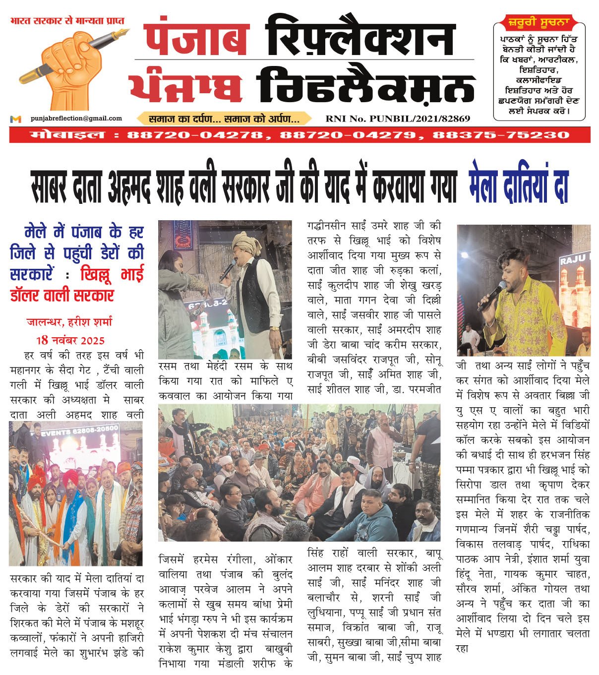 दिनांक 20 नवंबर 2025 दिन वीरवार के मुख्य समाचार