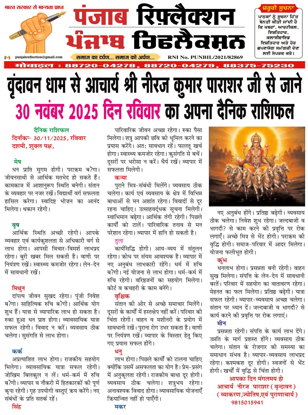 वृंदावन धाम से आचार्य श्री नीरज कुमार पाराशर जी से जाने 30 नवंबर 2025 दिन रविवार का अपना दैनिक राशिफल