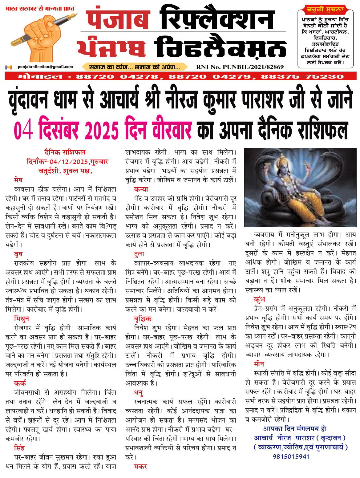 NEWSPunjabदिनांक 04 नवंबर 2025 दिन वीरवार के मुख्य समाचारBy Admin - December 4, 2025072 Share on Facebook Tweet on Twitter tweet दिनांक 04 नवंबर 2025 दिन वीरवार के मुख्य समाचार Google+ Google+ Google+ Google+ Google+ Google+ Google+ Google+ Google+ Post Views: 74