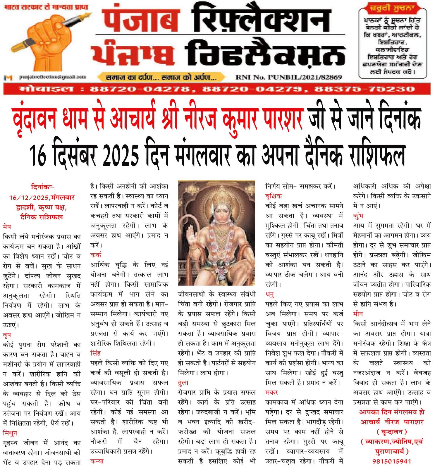 वृंदावन धाम से आचार्य श्री नीरज कुमार पाराशर जी से जाने 17 दिसंबर 2025 दिन बुधवार का अपना दैनिक राशिफल*दिनाँक:-17/12/2025,बुधवार*