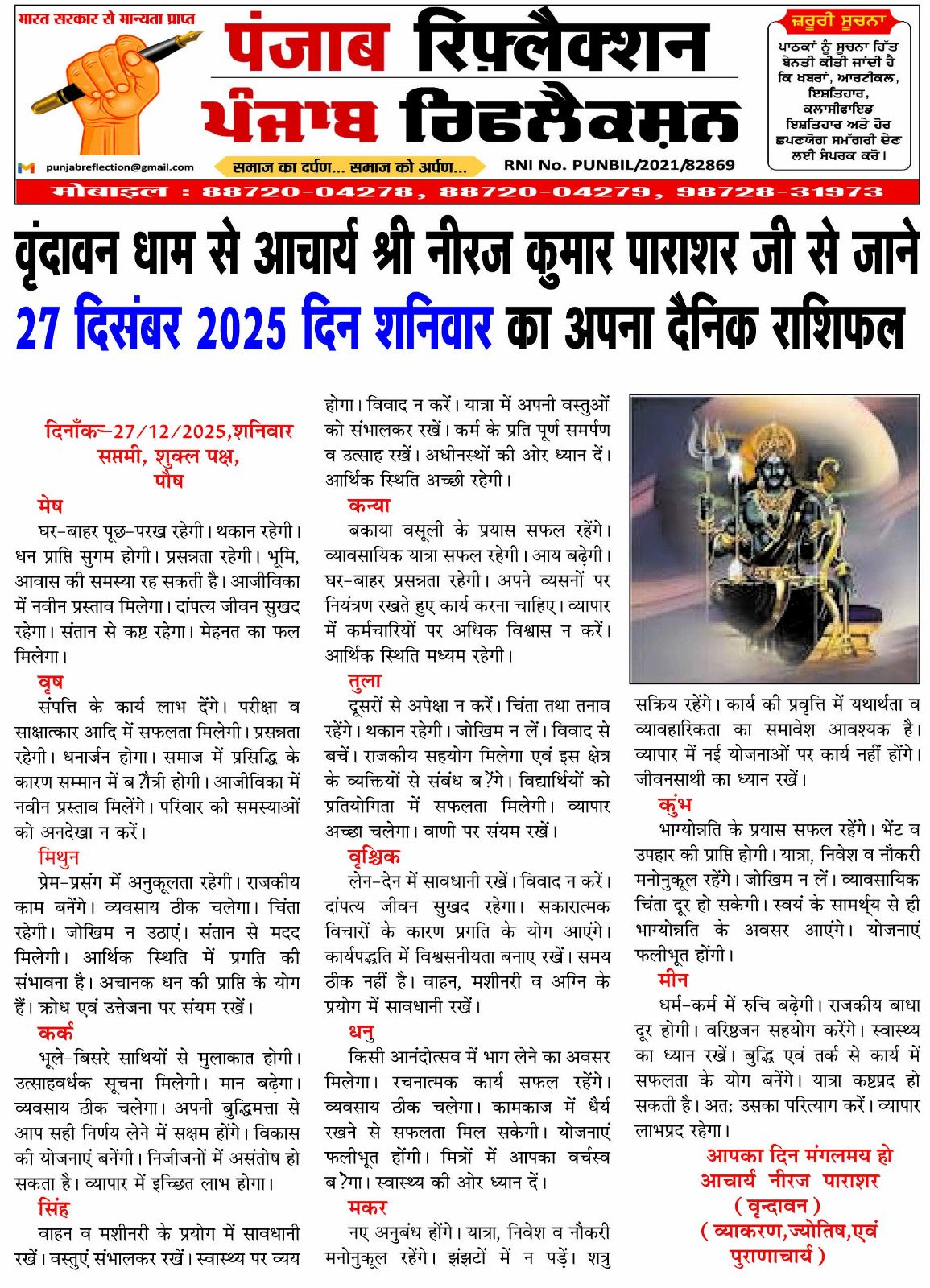 दिनांक 28 दिसंबर 2025 दिन रविवार के मुख्य समाचार