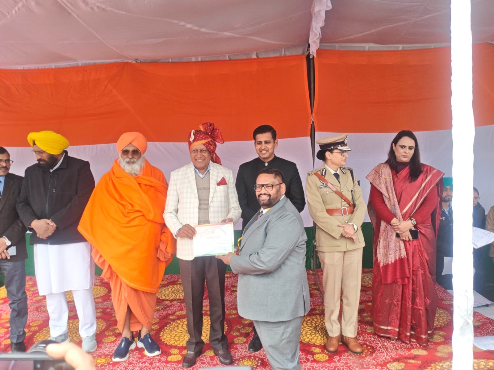 ਜਲੰਧਰ, 28 ਜਨਵਰੀ (ਐਸ. ਕੇ. ਕਪੂਰ) – ਗਣਤੰਤਰ ਦਿਵਸ ਦੇ ਪਾਵਨ ਮੌਕੇ ਤੇ ਜਲੰਧਰ ਦੇ ਗੁਰੂ ਗੋਬਿੰਦ ਸਿੰਘ ਸਟੇਡੀਅਮ ਵਿੱਚ ਹੋਏ ਸ਼ਾਨਦਾਰ ਸਮਾਰੋਹ ਦੌਰਾਨ ਜ਼ਿਲ੍ਹਾ ਰਿਸੋਰਸ ਕੋਆਰਡੀਨੇਟਰ ਅਮਨ ਕੁਮਾਰ ਸੱਭਰਵਾਲ ਨੂੰ ਵਿਸ਼ੇਸ਼ ਸਨਮਾਨ ਨਾਲ ਨਿਵਾਜਿਆ ਗਿਆ।