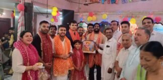 शिव मन्दिर जैमल नगर में केक काट कर जन्माष्टमी मनाई गई