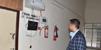 स्ट्रॉंग रूम में स्टोर ई.वी.एमज़ और वी.वी.पैट मशीनों के लिए...