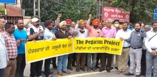 ਕੇਂਦਰ ਸਰਕਾਰ ਵੱਲੋਂ ਪੱਤਰਕਾਰਾਂ ਦੀ ਜਸੂਸੀ ਕਰਵਾਏ ਜਾਣ ਵਿਰੁੱਧ ਪੰਜਾਬ ਪ੍ਰੈਸ...