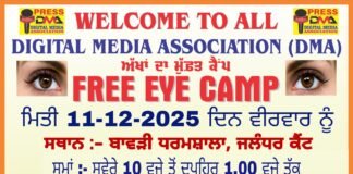 *ਡਿਜੀਟਲ ਮੀਡਿਆ ਐਸੋਸੀਏਸ਼ਨ (DMA) ਵਲੋਂ “ਅੱਖਾਂ ਦਾ ਮੁਫ਼ਤ ਕੈਂਪ” ਕੱਲ...