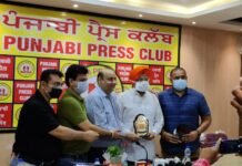 पंजाबी प्रेस क्लब में एम.एल.ए (वैस्ट) सुशिल रिंकू को किया गया सम्मानित