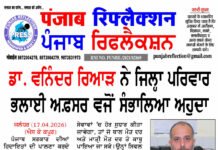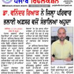 ਮਿਸ਼ਨ ਸਮਰਥ 3.0 ਤਹਿਤ ਅਮਨ ਸੱਭਰਵਾਲ (DRC) ਜਲੰਧਰ ਦਾ ਸਨਮਾਨਜਲੰਧਰ, 9 ਅਪ੍ਰੈਲ (ਐਸ ਕੇ ਕਪੂਰ): ਪੰਜਾਬ ਸਰਕਾਰ ਵੱਲੋਂ ਚਲਾਏ ਜਾ ਰਹੇ ‘ਮਿਸ਼ਨ ਸਮਰਥ 3.0’...